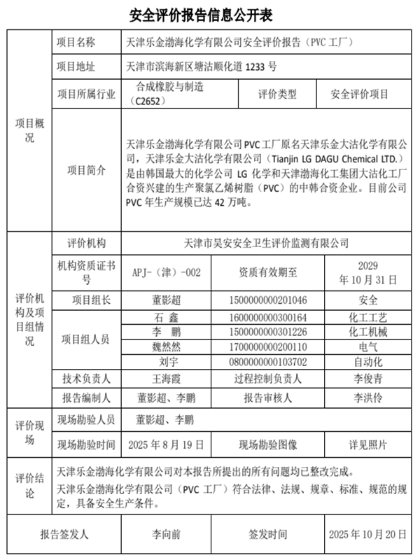 天津乐金渤海化学有限公司安全评价报告(PVC工厂)