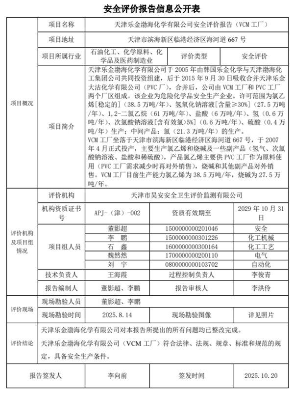 天津乐金渤海化学有限公司安全评价报告(VCM工厂)