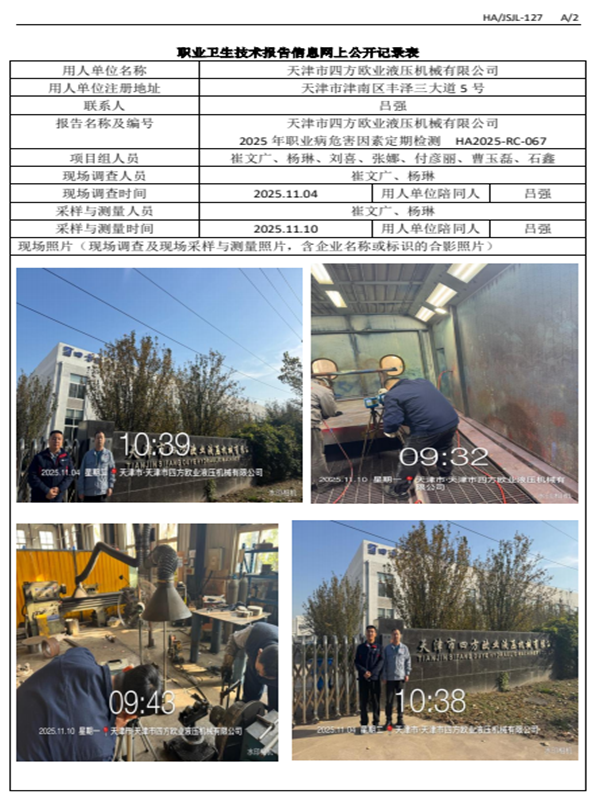 天津市四方欧业液压机械有限公司 2025年职业病危害因素定期检测
